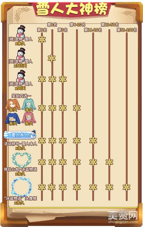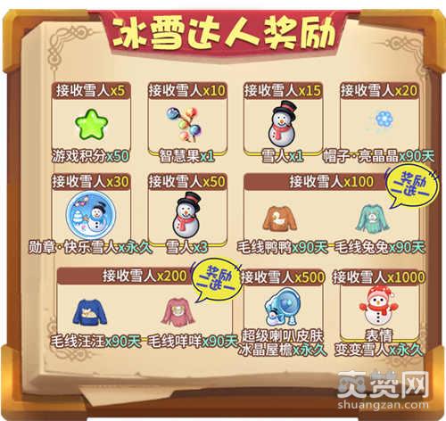 在活动结束后,接收“雪人”数量最多的前100位玩家可按排名获得奖励。