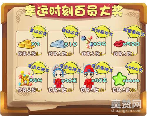 3. 若抽奖人数不足100人,则优先抽取“6666奖”,其次为“幸运男神奖”、“幸运女神奖”、“幸运大神奖”、“甜蜜亲吻奖”、“游戏狂欢奖”、“银闪闪奖”、“金闪闪奖”。