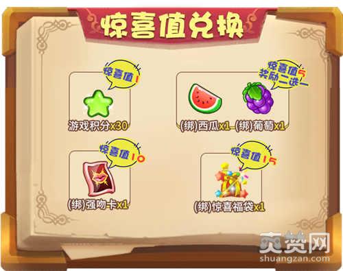 活动期间,每接收1个非绑定的惊喜福袋可以获得1点“惊喜值”,使用“惊喜值”兑换特别奖励吧!