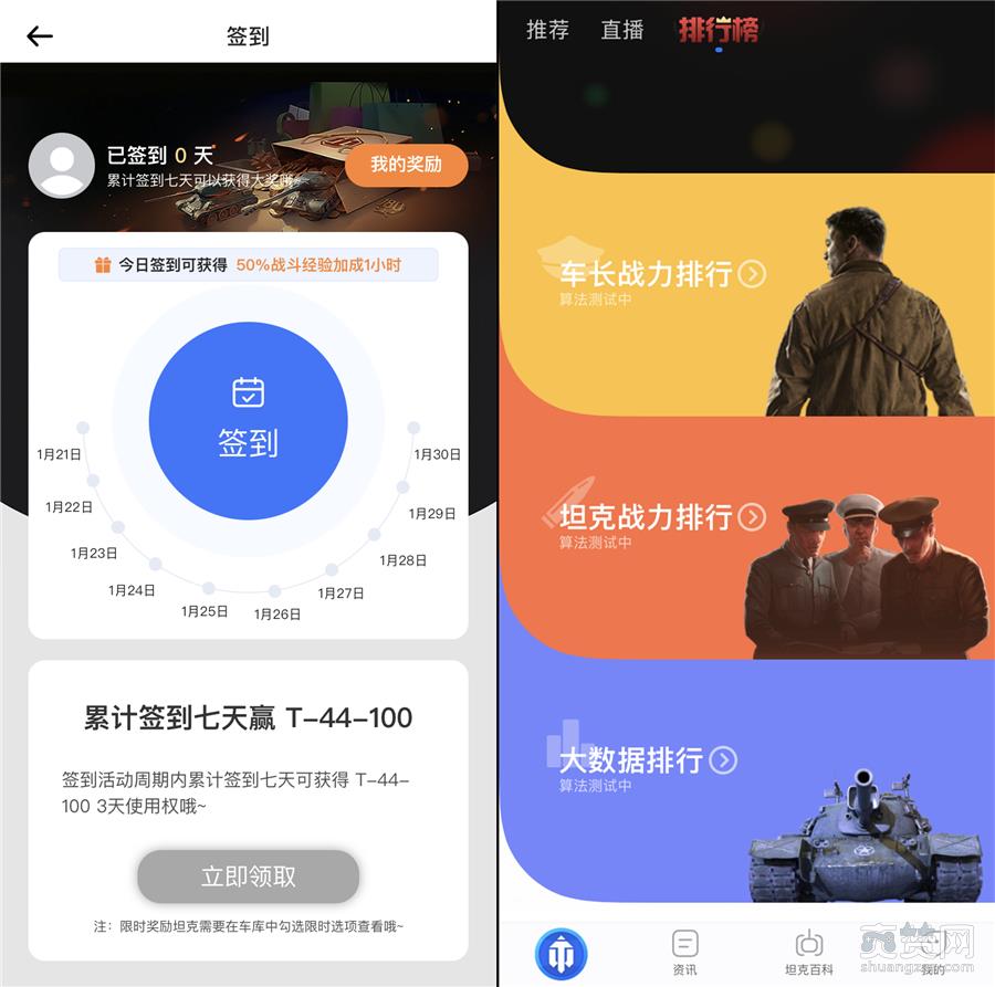 不只新版本有诸多惊喜内容,现在下载登录官方APP《坦克营地》,还可无门槛签到领奖,赢限时金坦T-44-100等豪横大礼。上营地,更可一手掌握坦克生态,浏览游戏资讯、坦克百科、热门活动、直播、短视频等全方位内容,更可快速查看国服坦克大数据,了解个人战绩以及全服榜单,挖掘更多战斗生涯乐趣!
