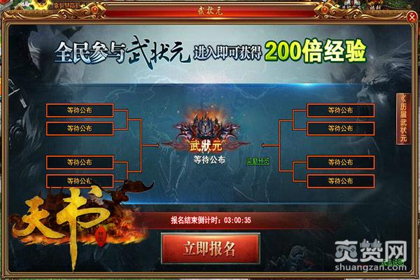 状元之名,是对于一个人实力的肯定,为了扬名立万、获得这令人尊崇的名望,你愿不愿意为之拼搏一把?在大黑《天书世界》中,武状元的赛场内聚集了天底下众多的高手大神,而其中唯有一人能够夺得状元名号。全身心地投入战场之中,为了心中的目标而不断向前奋进吧!