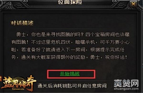副本内的每个房间都是一样的,共有25个房间,每次开启副本,系统会送5把位面钥匙。如果要跑完所有房间的话,是需要花费198元宝来进行购买钥匙,一共需要再多购买20把。进入房间后,点击NPC位面探险开始挑战。