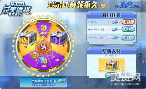 01月28日—02月10日期间,每日登录游戏或完成任务都可获得一定数量抽奖卡券,消耗1张卡券即可转动一次转盘,累计转动15次转盘还可获得传说零件盒子*1。