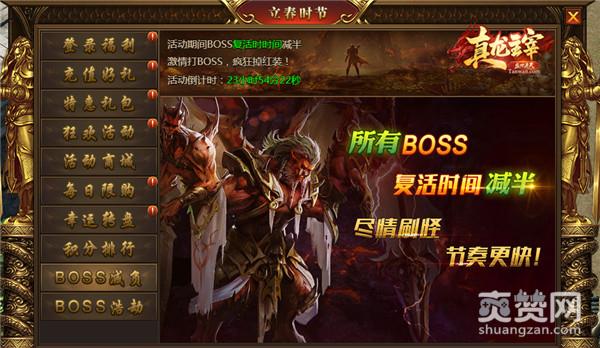 活动期间boss死亡复活时间减半,击杀1500级以上的boss和转生boss获得积分,活动结束后更加排行邮件发送奖励。