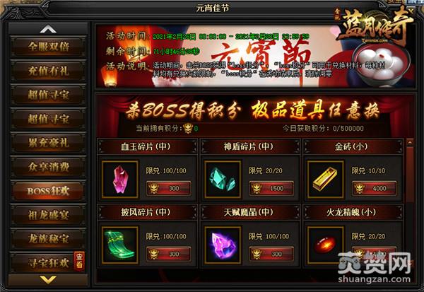 活动期间内,击杀BOSS获得“boss积分”,“boss积分”可用于兑换材料,每种材料均有兑换次数限制,“boss积分”在活动结束后,清除归零。