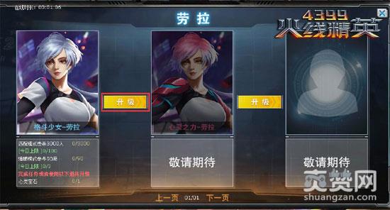 当获得系统赠送的劳 拉后,在个人信息→更换角色→角色列表中找到格斗少女-劳 拉。点击后,在左侧的角色立绘界面可以找到“升级按钮”。