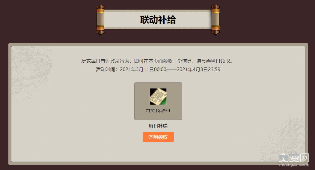 在活动期间,每日登录后都可在活动页面领取一份道具奖励。