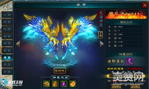 神翼最高九阶,每进阶一次都能获得更强大的战斗属性以及炫目的外观。