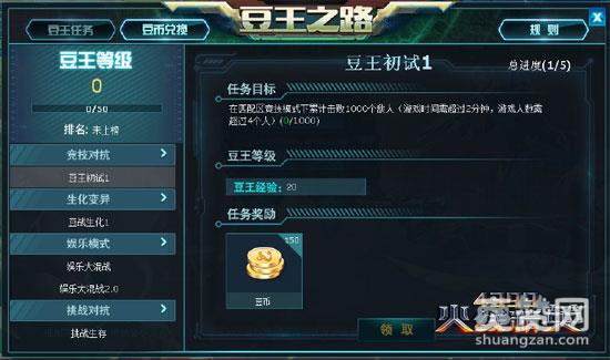 进入豆王之路界面后,界面左侧显示了豆王任务。点击任务,可以在右侧看见对任务的详细描述和奖励。