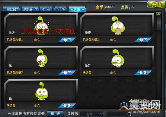 点击表情对应的“装备”按钮即可装备,已经装备的表情可以“卸下”。装备表情无法手动调配顺序,按照装备的顺序规定位次。