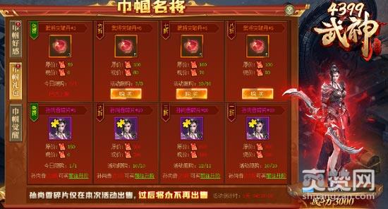 消耗点券可购买武将突破丹及孙尚香碎片折扣包。