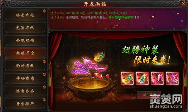 活动期间,轮回神装概率翻倍,翅膀神装限时抽取!没有一双好的翅膀如何能在战龙大陆自由自在地翱翔呢?喜欢的兄弟千万不要错过了呀。
