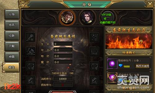 提高转生等级可提高基础属性和穿戴更高等级的转生装备,消耗转生修为可提升转生等级。