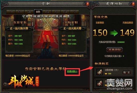 玩家通过控制面板的角色按钮进入官职,使用功勋来提升自己的官职。