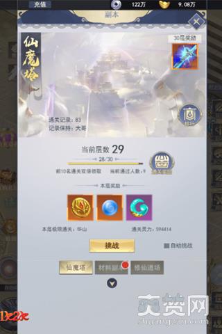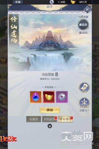 闯关仙魔塔能获取育灵币、法身培养石、器魂、法身飞升丹。同时通过一定的层数能获取更高等级的武器使用。