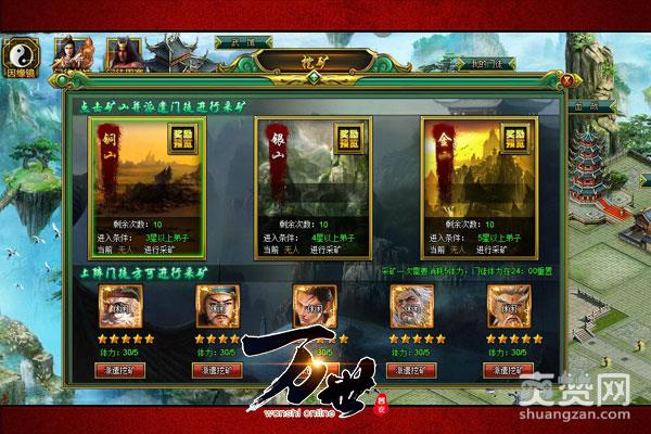 对于想要拥有傲人财富的人来说,不仅要通过自己的双手去挣得金钱,还要学会依靠他人的力量。在大黑《万世》中,当你创立门派并招募到江湖高手成为门中弟子后,便可让他们为你进行挖矿。门派周边矗立着铜、银、金三座矿山,其中财富、宝物源源不断,赶快安排你的门徒前去挖掘财宝吧!