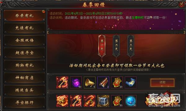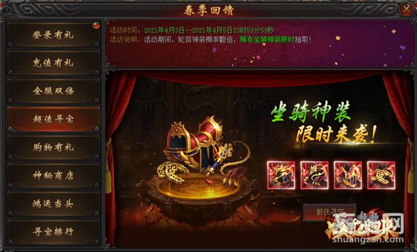 战龙春季回馈节日活动即将来临,为了不吊胃口,小编偷偷放出了一波活动内容哦,大家可以早作准备啦!活动时间就在不久后4月3日到5日,是不是觉得非常期待了呢?