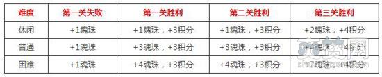 积分和魂珠数量与难度、胜负结果、任务情况有关;