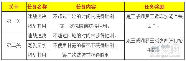 本次的武将牌局有一定难度。但是还是很有完成的必要,否则会在挑战最终BOSS时较为困难。第二关不阵亡和在4轮时间内获得胜利的任务难度偏高。