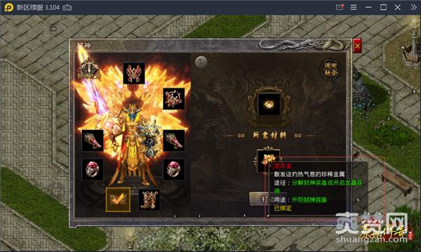 开启【龙晶】随机获得,周日挖宝有几率获得成品弑神装备及焚天金的产出。