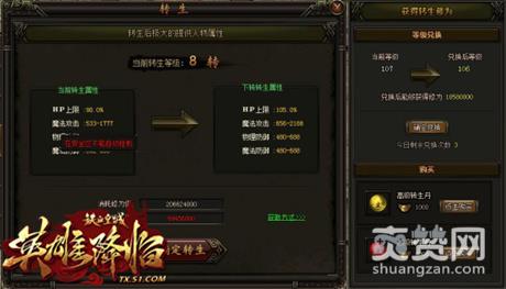 转生,因为刚开的新区,前7天是有开服等级竞技活动的,7天之内达到相应的转生,系统就会送福利,让人比较关注的就是6转送的5转衣服和7转送的7转武器。小编个人认为,7天之内达到7转还是比较划算的,所以,花点小钱,确保自己在7天之内能拿到7转的武器和5转的衣服。换而言之,花相等的钱去选择寻宝,不一定能搞到这两个装备。7转之后,建议就没必要再去花钱进行转生了,当然,土豪请绕道,自便。升级的话,个人玩法是升级到108级,也就是满级再选择降级,升到108级的时候,经验条最多可以达到200%,如果你想稳住108级,你可以放心大胆的先降级,当经验条达到108级的55%以上的时候,哪怕再降一级是依旧可以保持在108级的。一次降级可获得的转生修为是1580万。两次降级就相当于是300RMB,此性价比还是比较高的。