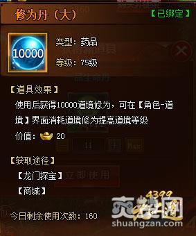 道境越高,能力越强,可以通过消耗等级经验来换取相应修为,也可以通过龙门探宝或商城获得超值修为丹,当道境修为满值时,可以进行道境突破。