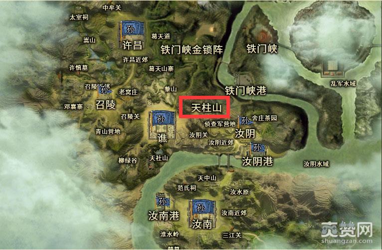 天柱山地处谯城和汝阴间的崇山峻岭之中,地图内地势多变,多有奇山异水,一道峡谷横亘图中,谷底江水常年奔涌不息。出现在这里的三名Boss分别是世界王“张邈”、“典韦”,以及精英轮播王“卫兹”。有“古之恶来”称号的典韦是地图中最为强大的Boss,长久以来,不知有多少准备不足的挑战者丧生在他的恶戟之下,化作天柱山间的冤魂。