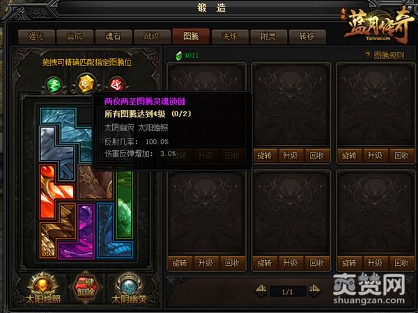 太阳烛照,获取的方式有,四大神兽的图腾,青龙,白虎,朱雀,玄武,来进行打造合成,太阴幽荧,获取的方式有,用四大凶兽的图腾来进行激活打造,梼杌,穷奇,饕餮,混沌,这四大凶兽的图腾,合成出来的也是随机的,伤害,图腾格式也都是不一样的,那么好了,图腾就到这里,当获得这十大图腾的时候,我们要根据自身情况去把他们全部拼凑起来,打造成一个完美的图腾,可以根据获得不同类型的图腾进行拼凑的,多的图腾进行回收获得图腾精华来升级,当拼凑出来的图腾,拼满这个图腾,相信,你基本已经在蓝月传奇这款游戏里面霸主一方了。