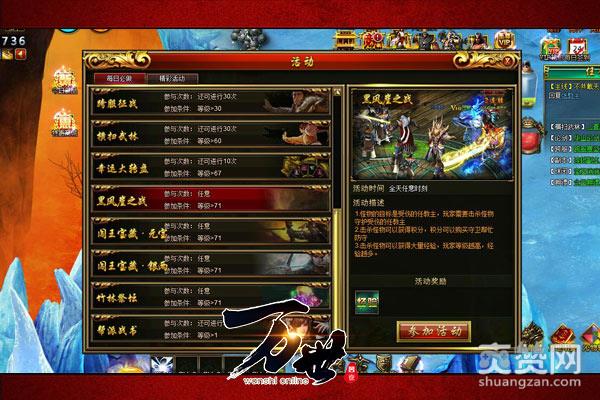 想要成为人人尊敬的大侠,我们就必须懂得保护弱者。在大黑《万世》黑风崖之战的活动中,任教主身负重伤,有数量众多的怪物趁此机会前来袭击,而你必须要保护任教主免遭对手伤害。对阵怪物的过程中,你将会得到大量经验和积分,一旦觉得需要帮手协助,便可使用积分召唤强力守护助阵左右。