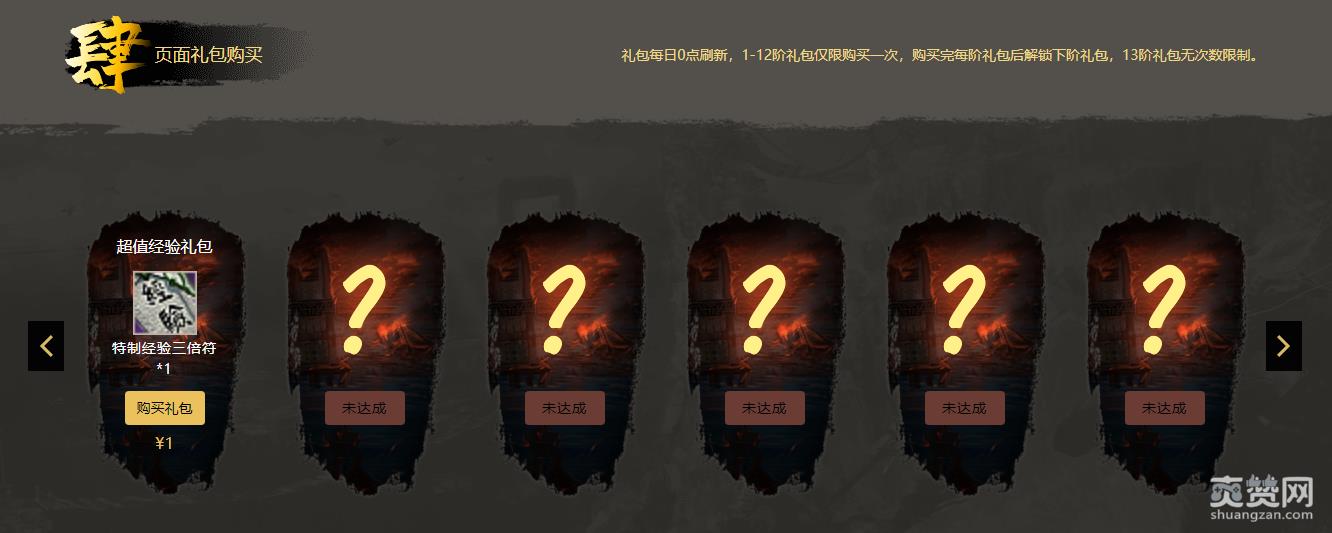 游戏更新后,玩家将可以在活动页面购买网页礼包,礼包的购买次数会于每日的0:00刷新,购买次数不可累积,只有购买当前礼包才能继续购买下一礼包。礼包共有十三阶,在购买了十二阶礼包之后,最后一阶的礼包将不限购买次数。玩家可以通过购买礼包获得大量经验三倍符,提高在新版本冲级的速度。