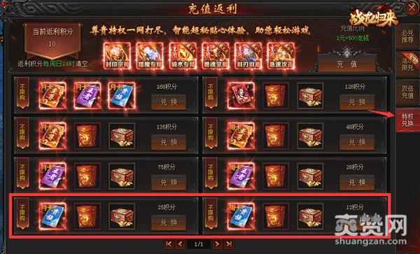 主要的功能可以设置在线自动回收装备,不需要跑到主城指定的NPC回收,离火封魔获取经验提升20%。每天还能领取500荣誉和5万元宝。这里小编提醒大家要注意一下,这里面有一个是月卡,一个是周卡,一定要看清楚时间在点兑换。返利积分是你充值获得的,比例是1:1,使用返利积分并不会影响你充值的龙钻,每周日24时会固定清空,一定要在清空兑换干净避免浪费。