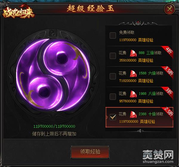 如果你想快速的提升你的等级经验炼制,不妨可以试试经验玉这种方式。可多倍领取经验看个人需求,不过还是建议尽量多倍领取,经验玉一天只能获得少数量的,今天的使用完只能第二天获取了,而且后面等级高了话,不领取十倍的话所获得的经验也不会太多。 这个价格是2.5折,对于劳动人民来说,打折商品2.5折还是不能错过的。