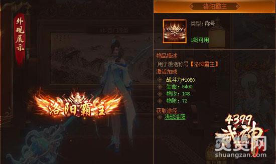 城主专属奖励:专属皇冠、洛阳霸主称号。