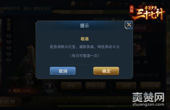 通过敬酒可降低切磋对象的战力,每日仅可敬酒一次。