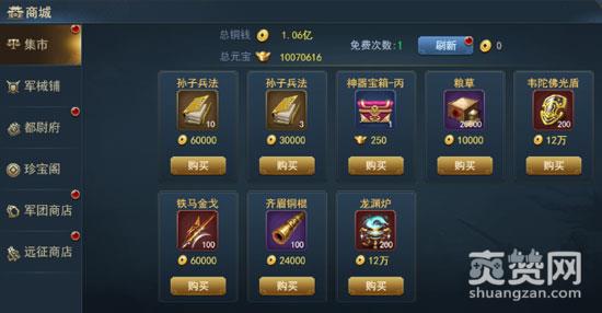 各位主公,走过路过,不要错过哦!《4399兵法三十七计》集市商城出售武将经验书、陨铁、训练材料、神器宝箱、宝物碎片、粮草等常规资源,快来抢购啦!