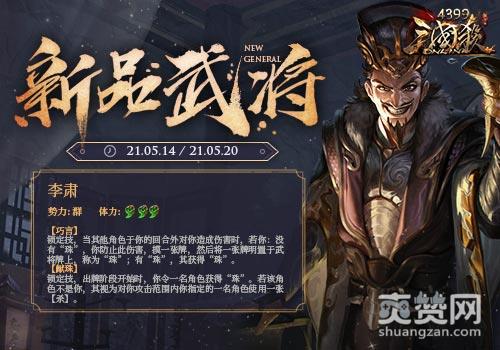 李肃:2021-05-14 10:00起,正式上架武将商城(5800元宝)