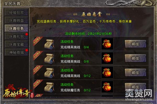 豪华的庆典悬赏任务,只需完成精英挑战和除魔任务即可完成庆典任务,而且完成庆典任务还有丰富的好礼,比如说百万金币,十万传奇币,各种稀有材料~,小编看着都直流口水啦!快来参加此次庆典任务吧!