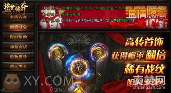年的脚步一步一步近了,寒冬也即将在千万玩家的陪伴下缓缓逝去。年前最后一次狂欢,XY游戏《蓝月传奇》全新战纹活动今日上线,还不快来跟我们一起全副武装,全力进击!