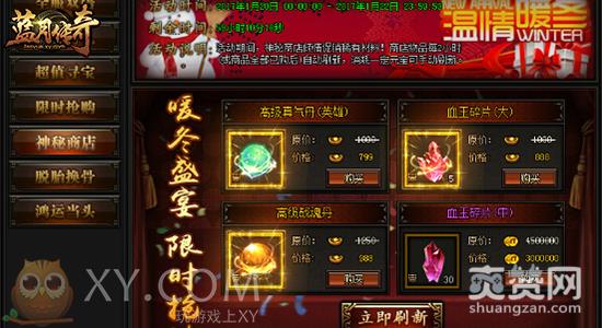 值此普天同庆的时节,神秘商店怎可缺席?1月20日,XY游戏《蓝月传奇》传说中的神秘商店也将准时开启,诚意给大家带来超低价的稀有材料,想要提高战力,就绝对不能错过这一次机会。另外,XY游戏《蓝月传奇》神秘商店的商品依旧是随机刷新的哟,刷新时间为2小时,消耗元宝也可以立刻刷新,所以记得要时常点开查看哦!超值优惠,就看这一次了!