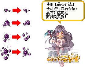 小贴士:黑暗中的矿洞,实在让人看不清,这时在聊天窗口输入文字“我要火把”发送出去后,就能获得一小片光明,“我要火把”技能可以在天黑后晚上19:00~早上6:00在中 央广场的皮卡喵处学习。当然,我们也可以在商城购买到【矿洞提灯】,并装扮起来,这样就能获得比火把更明亮的效果了。