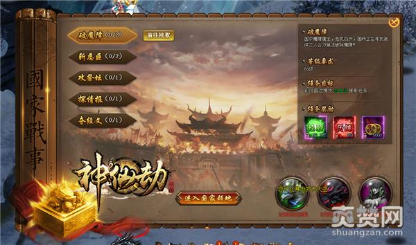 谁说仙侠不能打国战!360uu《神仙劫》全天候国战开启,风、火、雷三足鼎立割据天下,而你则将代表国家为之而战!全新攻城掠地玩法震撼推出,抢城池拿功勋,开宝箱升仙阶,更有掉宝BOSS定时刷新,众多宝藏都将在这里等你领取!