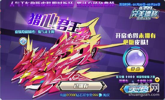 05月20日—05月26日期间,曹操七夕限定皮肤——猎心君王,绝版返场。首件隐藏属性皮肤,装备后集气快速衔接。强力赛车属性,助你称霸赛道!充值满2000钻石,可享受超低价格购买,时间优先,抓紧抢购。