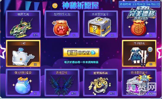 05月20日—06月02日期间,本次加入超强宠物“小鲲”及限定豪华套装。每次祈愿必得1件奖池内物品,祈愿获得的物品将移出奖池,不会再次获得。每次消耗的充值钻石数递增,直至已获得奖池内所有物品。若获得已拥有物品可选择回收,回收后可将物品转换为相同数量的绑钻。回收仅限服装、赛车、宠物哦~