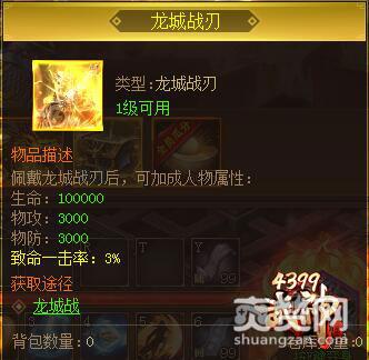 城主专属奖励:神兵——龙城战刃、称号——龙城霸主