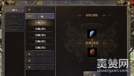 点击主界面右侧合成按钮打开合成界面。玩家通过精英悬赏任务获得玉佩。