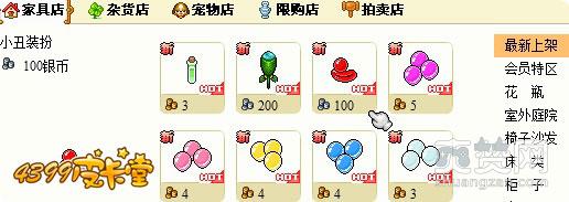 商城最新上架会出售小丑装扮,购买小丑装扮的玩家,就有可能在变身小丑的时间内被幸运的选中,变成为小丑叔叔!变身小丑叔叔后,可以点击其他玩家,选择“送气球”气球一共有七种颜色,被赠送气球的玩家,会随机得到一种小丑叔叔送的气球哦!每个小丑叔叔只能送同一个玩家一次气球。