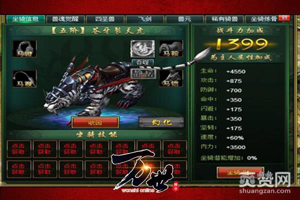 对于常年行走在外的侠士们来说,坐骑一定是不可或缺的存在,不仅能为我们带来方便,还是我们重要的战斗伙伴。在大黑《万世》中,坐骑霸气威武,颇有一骑横扫天下的气势。当然,它并非徒有其表,在提升移动速度的同时,它还能为你带来大量战力加成,成为你不可或缺的战斗力。