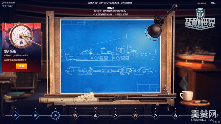 舰长们每次完成船坞中发布的战斗任务,皆可推进工程进度,从而完成造船阶段。整体战斗任务将会在0.10.3和0.10.4两个版本中开放,在休闲放松中也可顺利完成建造哟~