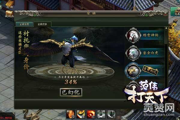 大黑《范伟打天下》中为玩家带来各种华丽坐骑,提升玩家的过图体验。游戏中的玩家的坐骑可以消耗在线时长和银两升星,玩家的坐骑阶级越高,还能激活更多坐骑外观和提升大量属性身价。鎏金白虎、冰霜骨龙等多种坐骑只要升星即可拥有,升级外观提高身价只要在线赚银。