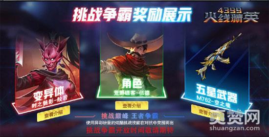 全新挑战争霸系统即将登陆《4399火线精英》,全新排行榜奖励等你来领!今天先来个小剧透,小伙伴们在全新挑战争霸模式中将获得哪些奖励呢?时之魅影-般若、荒野镖客-伍德,以及全新五星传说武器M762-空之境都将成为全新系统的奖品,先睹为快!